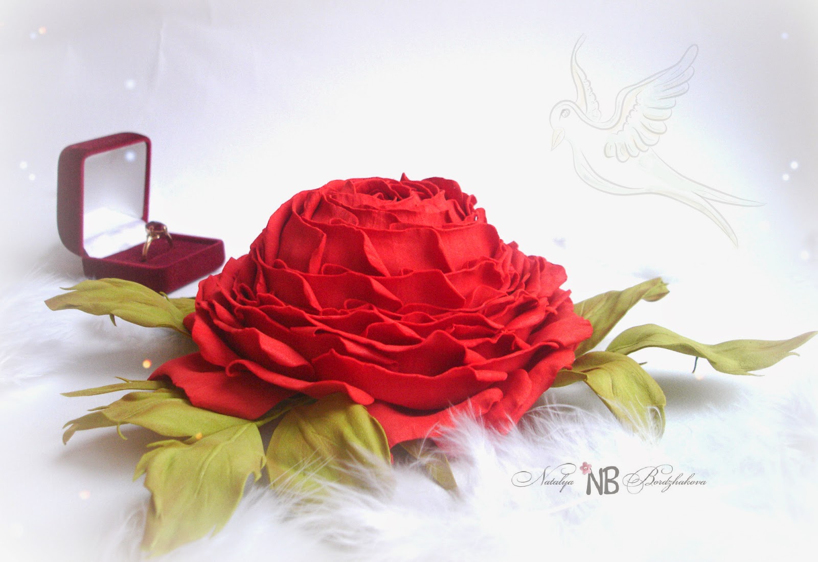 Первую работу я делала под чутким руководством цветочного кутюрье Натальи Асатуровой. У нее, собственно, и поняла, как же правильно собрать розу... Скажу сразу, роза не самый простой цветок и работать с ним надо в состоянии влюбленности... без спешки. )))